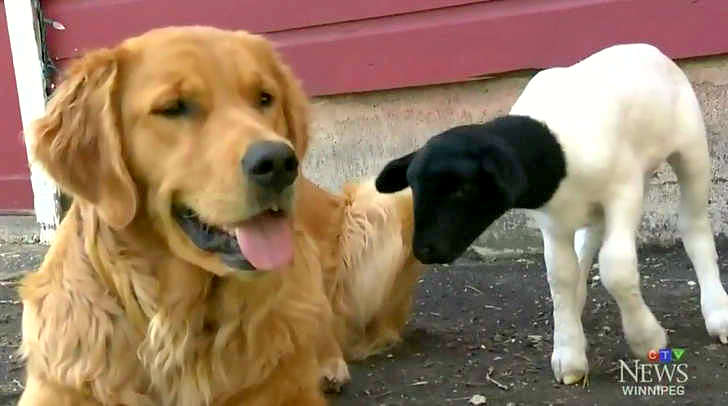 The wee lamb was born on May 17th at a farm near Winnipeg. She was swiftly abandoned by her mom, but as good fortune would have it, as dog at the farm took a liking to her.